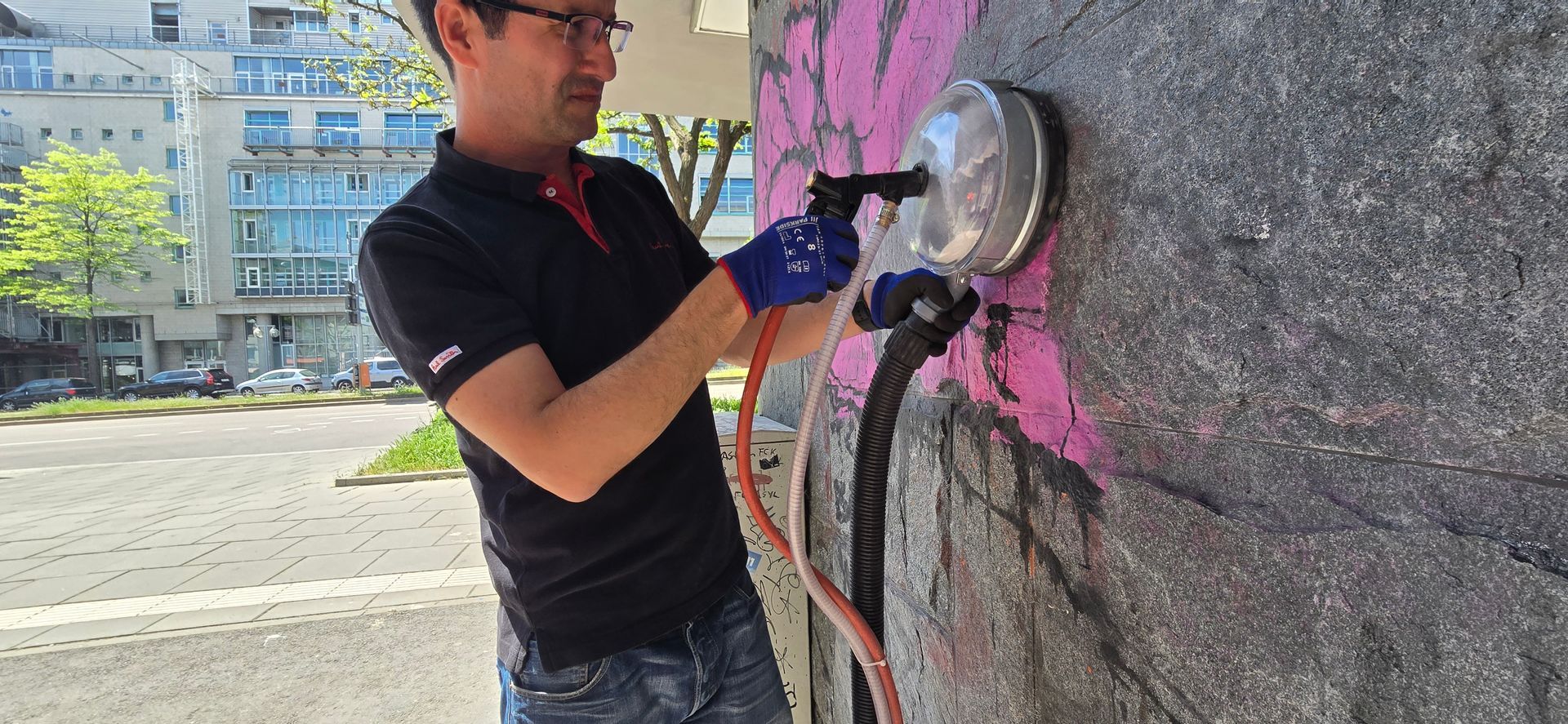 Die Graffitientfernung an unserem Firmensitz ging super schnell und ohne Rückstände. Besonders überzeugt hat uns, dass komplett auf schädliche Chemie verzichtet wurde.